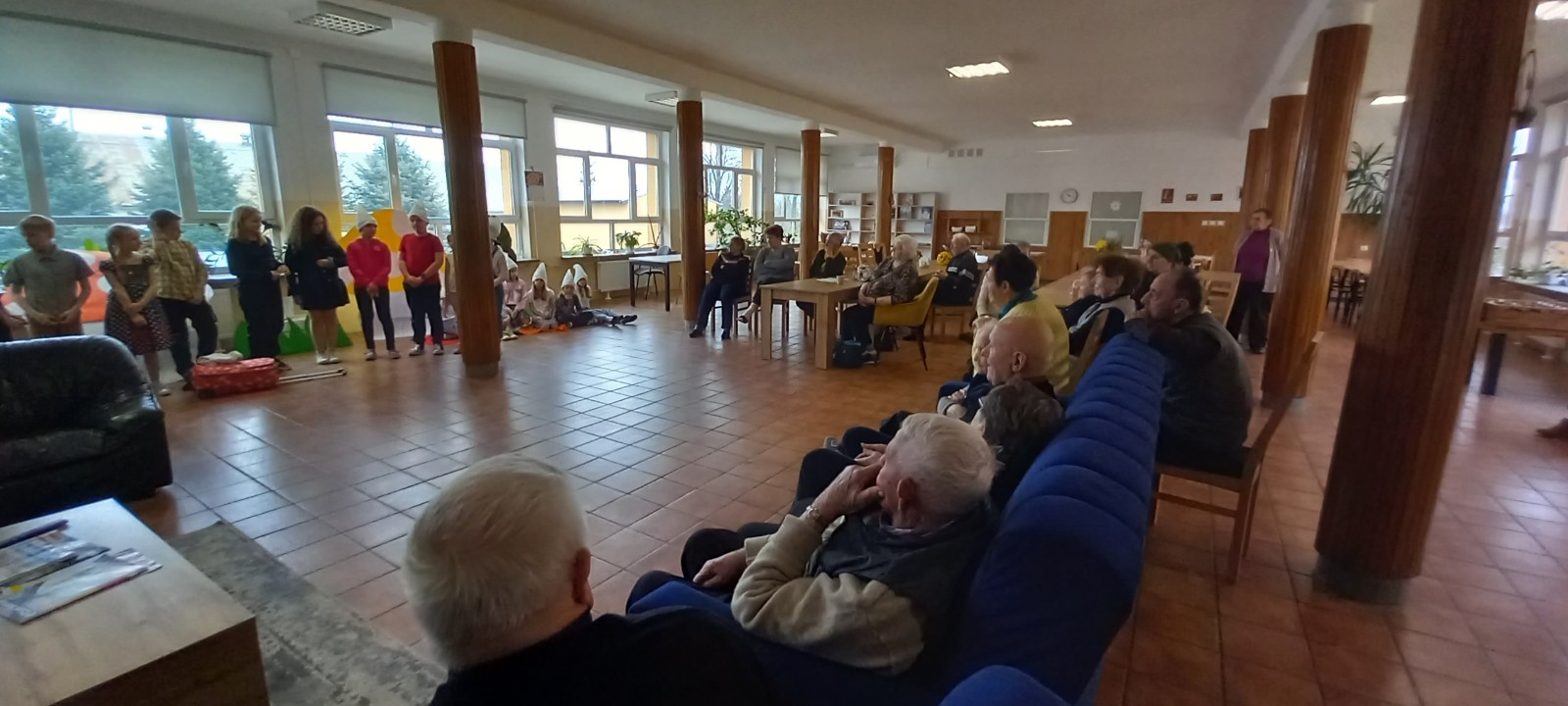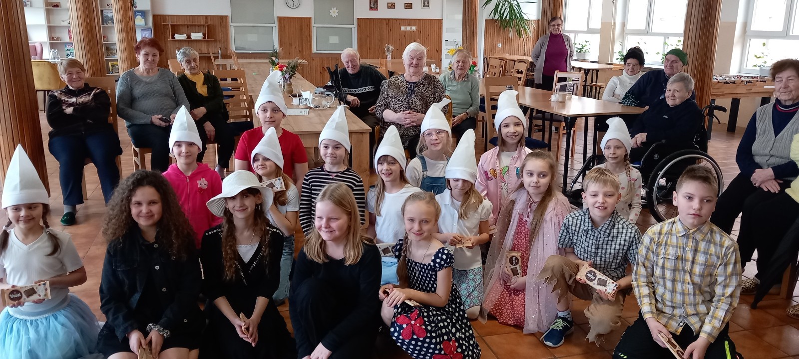 Uczniowie Zespołu Szkolno-Przedszkolnego w Wysokiej z Koła Teatralnego TADAAAM odwiedzili Seniorów w Ośrodku Opieki Dziennej w Wysokiej ze swoim programem artystycznym spektaklem pt. „Baśniowy Ambaras”.