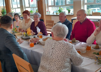 Jako, że czas świąteczny zbliża się wielkimi krokami Seniorzy z Ośrodka Opieki Dziennej w Wysokiej wspólnie z Panem Jakubem Czarnotą - Wójtem Gminy Łańcut oraz Panią Martą Zięba – Kuźniar - Dyrektorem OPSGŁ wzięli udział w uroczystym Śniadaniu Wielkanocnym - najważniejszym i starannie pielęgnowanym przez nas zwyczaju tych świąt.