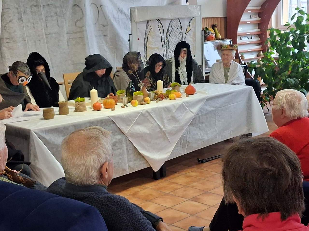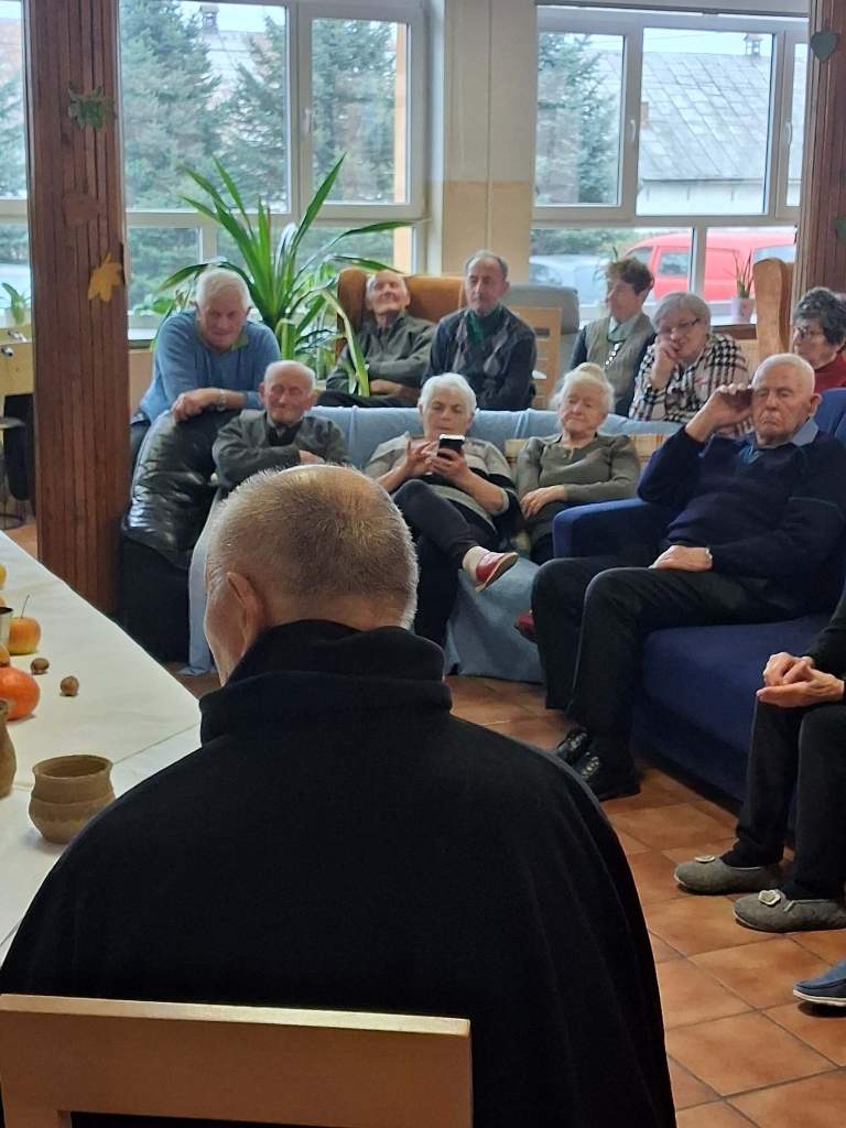 W pochmurne listopadowe przedpołudnie Seniorzy z OOD w Wysokiej wspominali jak drzewiej świętowano zaduszki czytając fragmenty II części „Dziadów” A. Mickiewicza. Warto zaznaczyć, że uczestnicy zajęć w ośrodku włączyli się w przygotowanie dekoracji oraz charakteryzację osób wcielających się w poszczególne postacie dramatu. Ponadto w dniu 8.11.2024 r. jedna z Pań uczęszczających na zajęcia do ośrodka przeczytała fragmenty książek dotyczących wizji czyśćca oraz dusz czyśćcowych znanych mistyczek - s. Faustyny Kowalskiej, Marii Simmy czy współczesnej nam Cataliny Rivas.