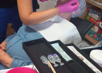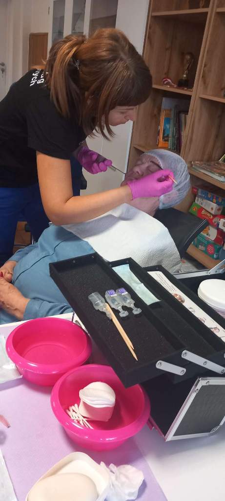 Po części teoretycznej nastąpiła część praktyczna w której każdy z uczestników miał okazję wykonana peelingu, masażu, nawilżenia dłoni, a kilka pań miało wykonaną hennę brwi.