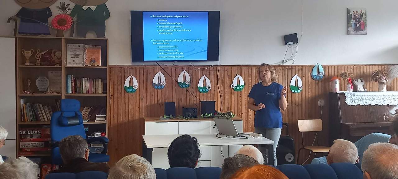 W ramach obchodów Międzynarodowego Dnia Urody Seniorów z Ośrodka Opieki Dziennej w Wysokiej odwiedziły słuchaczki z Medycznej Szkoły Policealnej w Łańcucie z kierunku technik usług kosmetycznych wraz z instruktorkami panią Jolantą Szpunar oraz panią Agnieszką Gargałą . Podczas zajęć pani Agnieszka Gargała przedstawiła podstawowe informacje dotyczące procesu starzenia się skóry oraz sposobów pielęgnowania skóry w starszym wieku.