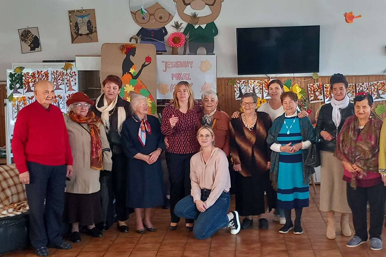 W piątkowe przedpołudnie Seniorzy z ośrodka zaprezentowali co będzie się nosić w jesiennym sezonie. Zaprezentowane kreacje uwzględniały zmienną aurę związaną z tą porą roku, a zatem pojawił się już parasol, szalik oraz kapelusz.
